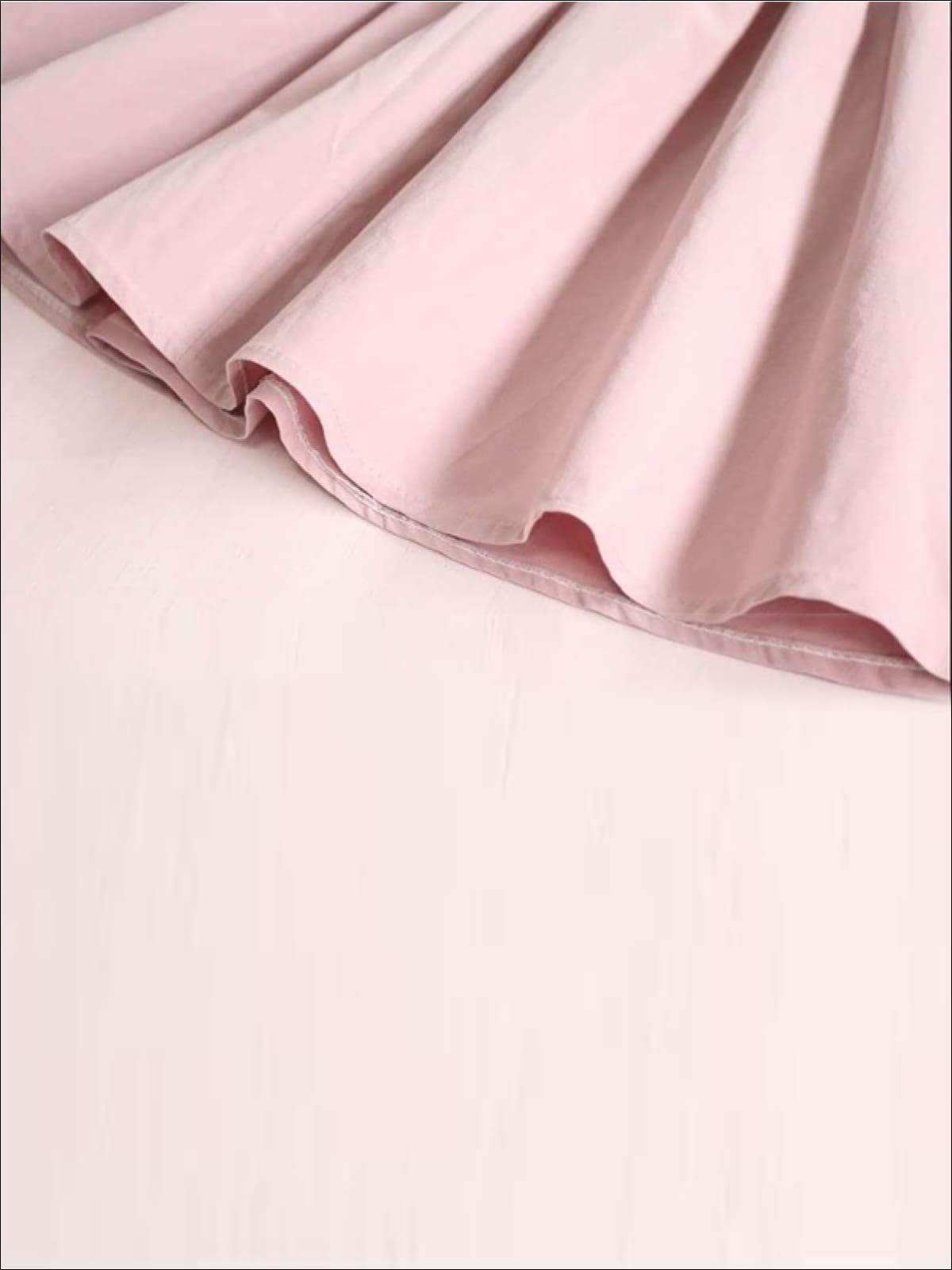 Girls Casual Ruffled Flutter Sleeve Dress with a Bow - Girls Spring Casual Dress