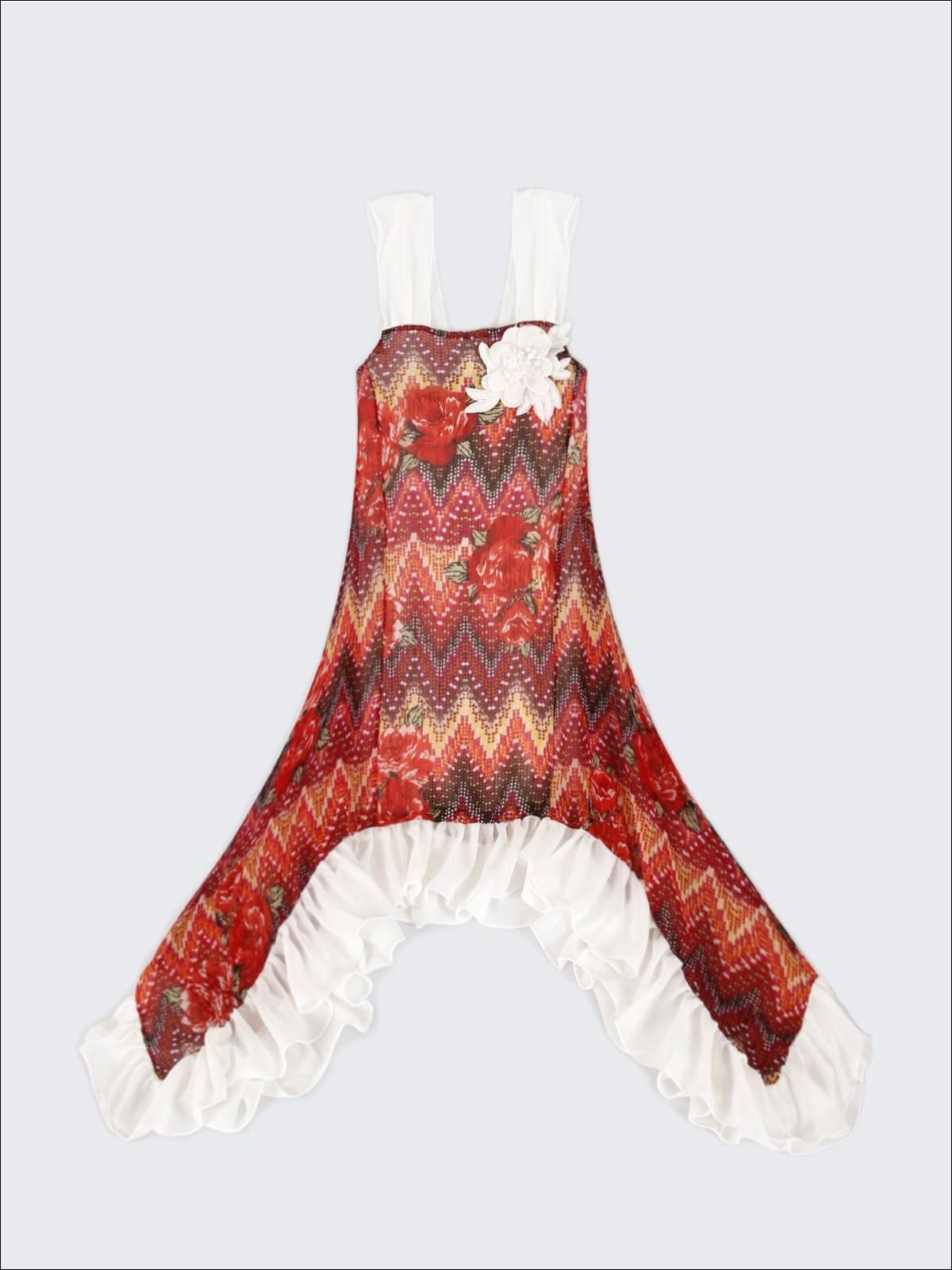 Bright, colorful, and oh-so cute, this dress is the perfect staple for her ever-growing wardrobe. With an adjustable tie on the back, she can wear it for years without growing out of it. The side tail ruffles add an extra touch of cute!