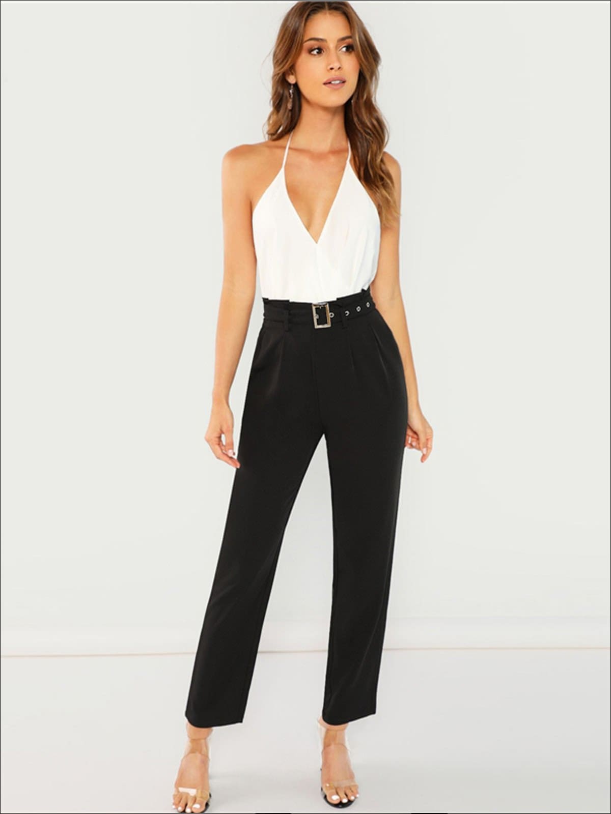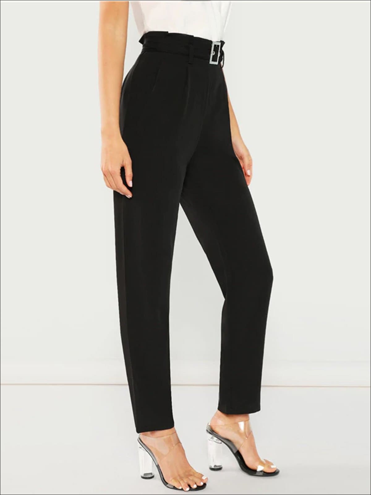 Boost your corporate look with these casual black trousers with pleated details and buckle belt. Perfect for a more sophisticated and stylish look!