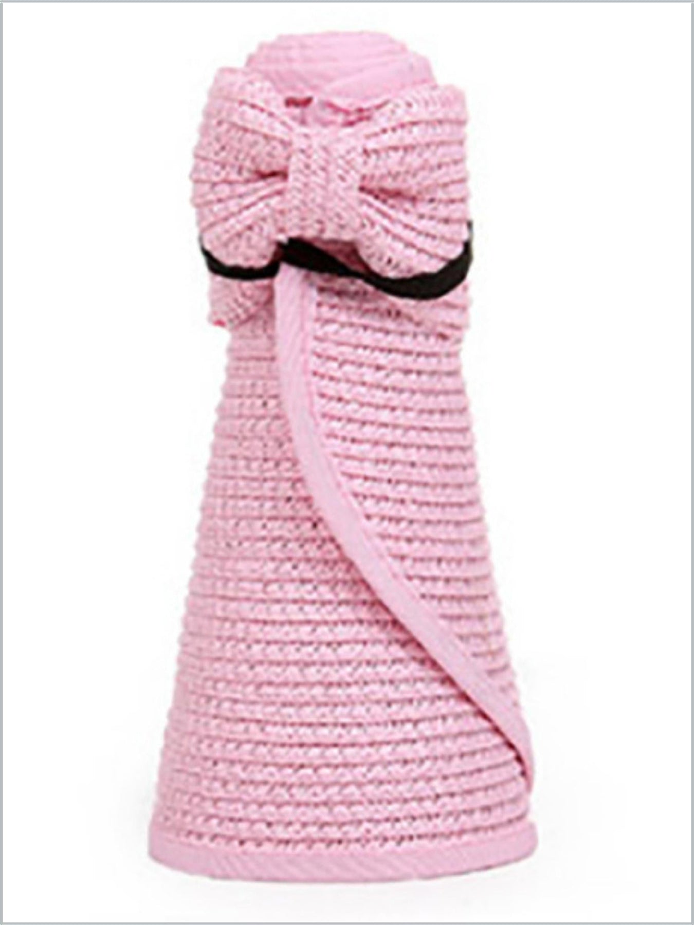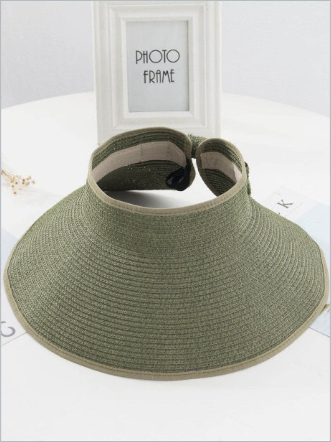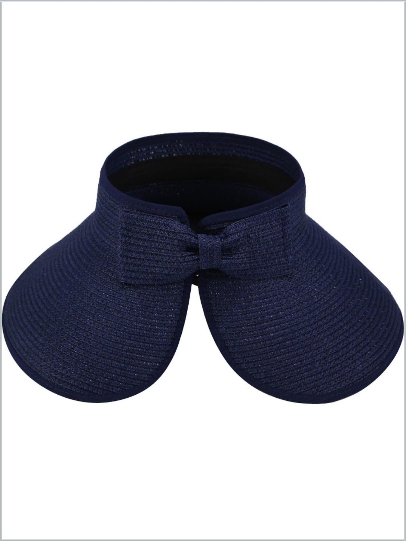 - Features a straw pinstriped downward brim visor with a bow on the back