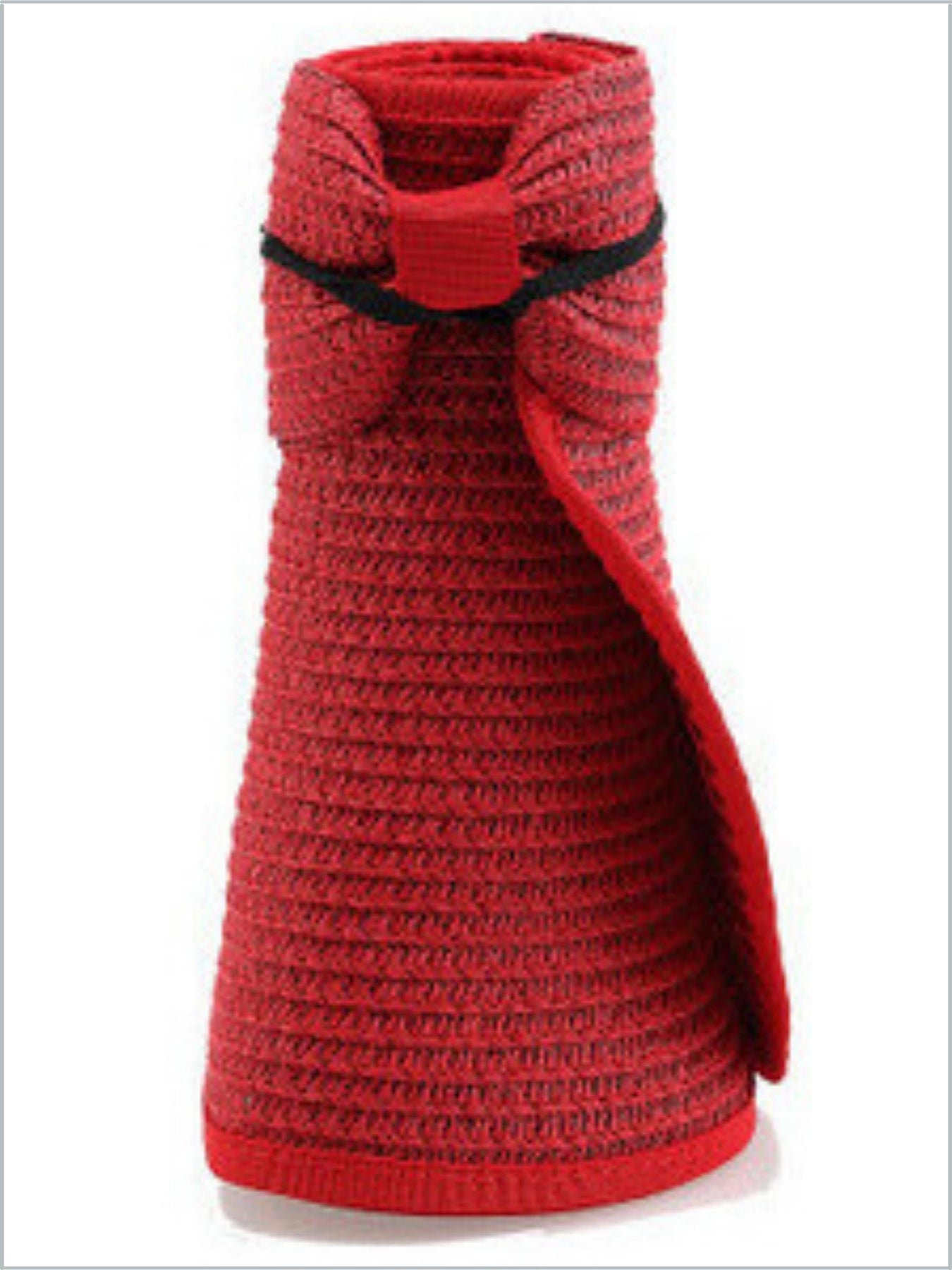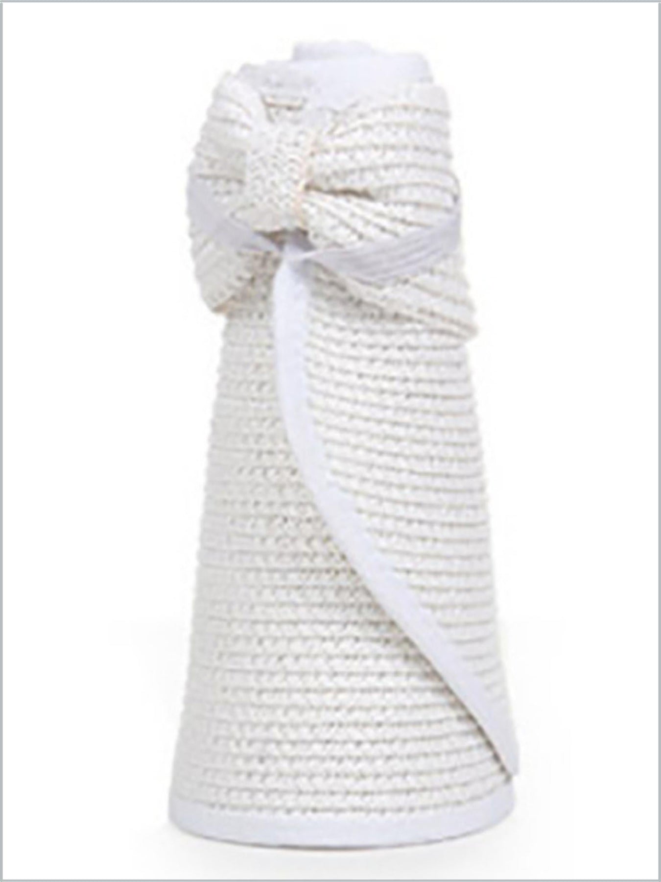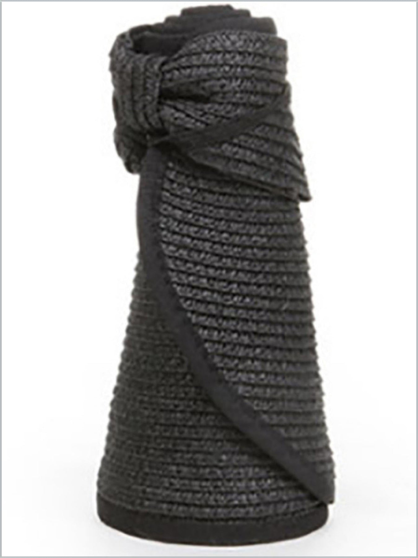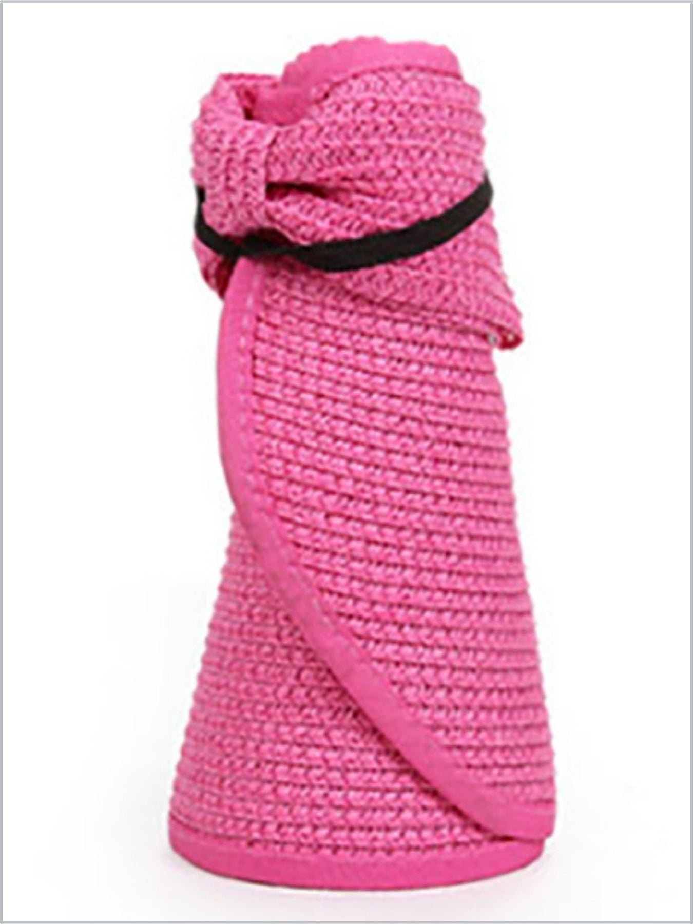 - Features a straw pinstriped downward brim visor with a bow on the back