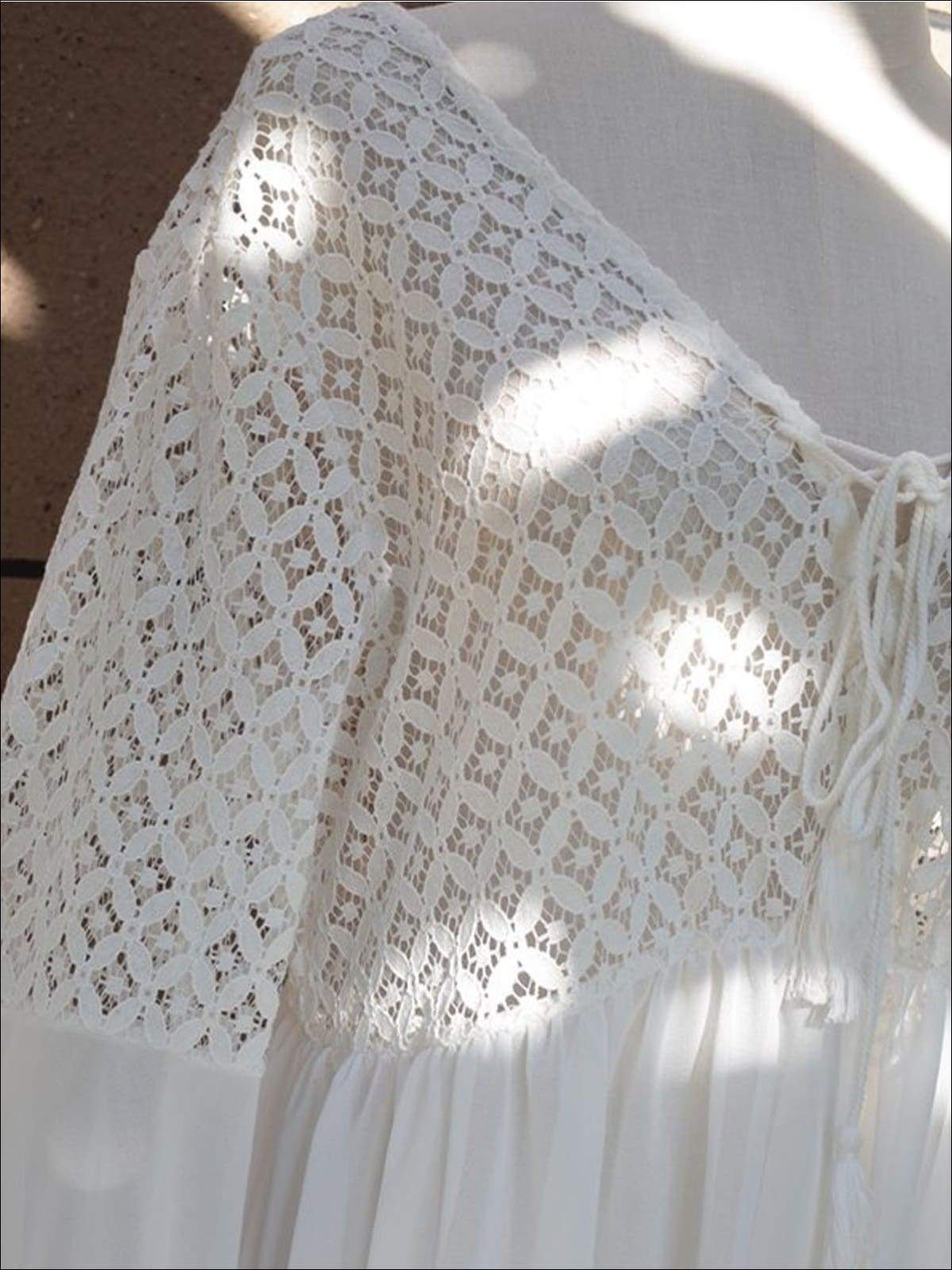 Womens Flare Sleeve Lace Up Chiffon Maxi Dress - White / One - Womens Dresses
